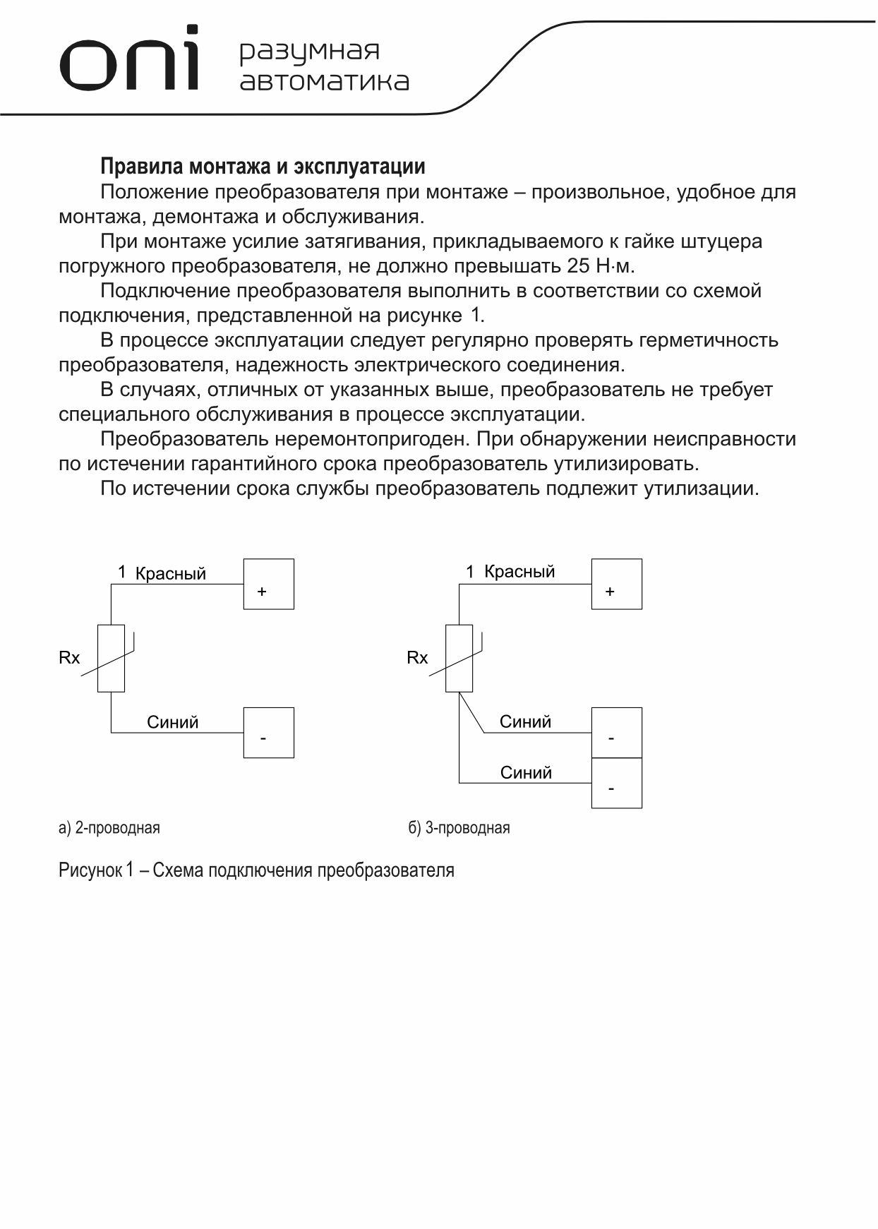 Преобразователь температуры погружной РТ100 M20х1,5 100мм 2м монтажная головка ONI