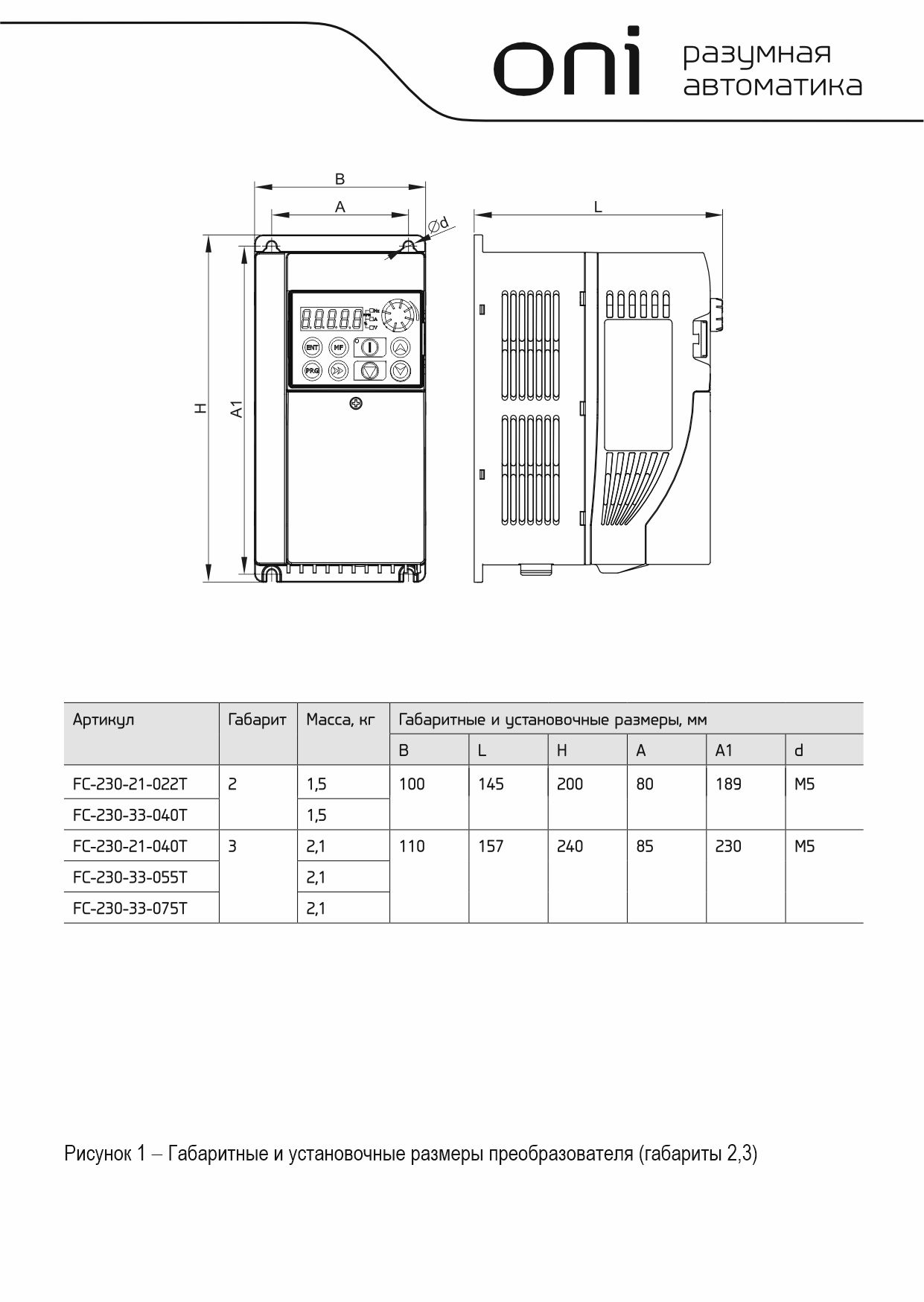 Преобразователь частоты ONI FC-230 предназначен для управления электроприводом в составе систем вентиляции, кондиционирования и водоснабжения объектов. Встроенные функции позволяют эффективно управлять электроприводом без использования внешних устройство АСУТП, а встроенный интерфейс RS-485 с протоколом Modbus-RTU позволяет интегрировать данный ПЧ в системы автоматизации зданий любой сложности и разветвлённости. При использовании соответствующих моделей с питающим напряжением 220В позволяют подключить стандартный 3-х фазный асинхронный электродвигатель в режиме "треугольник" к бытовой однофазной сети, что дополнительно расширяет диапазон возможных применений данной модели.