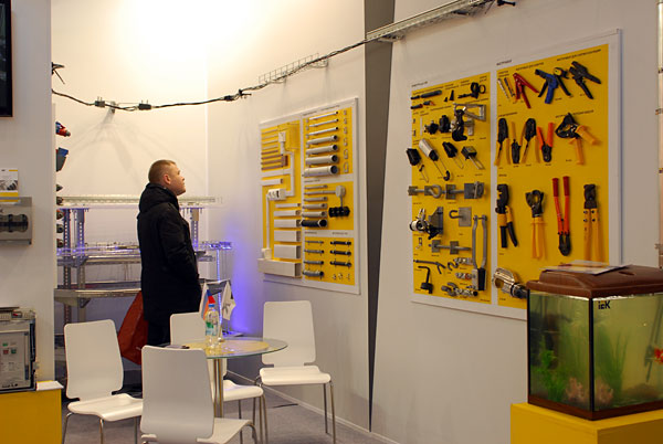 Ещё одним заметным экспонатом стала воздушная линия СИП, проложенная по общепринятой технологии — с применением арматуры, а также менее традиционной способом — с использованием металлических лотков. Она позволила не только показать различные решения для кабеленесущих систем, но и продемонстрировать широту ассортимента IEK®, с помощью которого можно полностью оборудовать линии электропередач от распределительного узла до конечного потребителя.