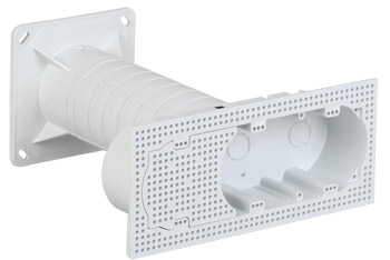 Габариты 120х120х200 мм. Служит для монтажа электроустановочных изделий (розетки, выключатели) на термоматериалы при утеплении фасадов зданий. Конструкция и материал изготовления коробки исключают образование тепловых мостов.