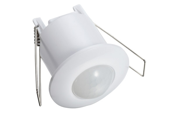 Инфракрасные датчики движения имеют возможность регулировки времени выдержки включения и порога срабатывания в зависимости от уровня освещенности. По способу установки разделяются на встраиваемые и настенно-потолочные, угол обзора датчиков – 360°/120° (горизонталь/вертикаль), дальность действия 6 метров.