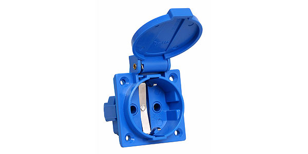 Розетка изготовлена под стандартную евро-вилку 2P+PE, рассчитана на рабочее напряжение 250 В и рабочий ток 16А. Наличие крышки обеспечивает степень защиты IP44. Розетка комплектуется резиновой прокладкой, которая обеспечивает плотный контакт с поверхностью, на которую устанавливается изделие.