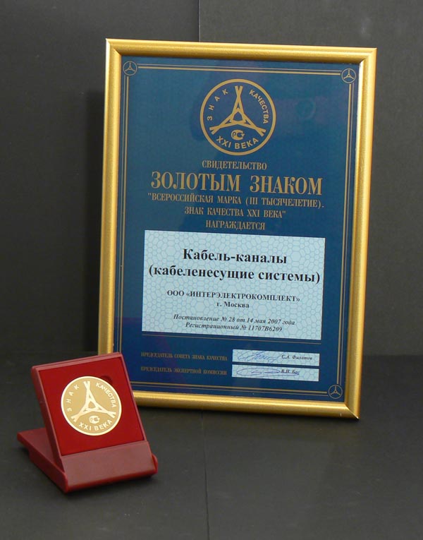 Контакторы КТИ, металлокорпуса, кабель-каналы, устройство дифференциальной защиты АВДТ32, выключатель автоматический АД12М, получившие Золотую медаль «Знак качества XXI века», теперь могут в течение двух лет маркироваться специальным знаком, эмблема премии с указанием года ее получения также будет использоваться в деловой документации и рекламных мате¬риалах. «Золото» национальной конкурсной программы «Всероссийская Марка (III тысячелетие). Знак качества XXI века» - еще одно убедительное доказательство высокого уровня продукции, выпускаемой под маркой IEK.