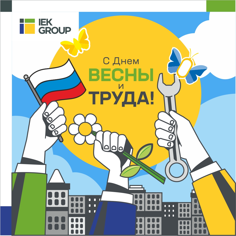IEK GROUP поздравляет вас с Первомаем! Желаем вам успехов в труде и сплоченного коллектива, побольше ярких идей и творческих успехов во всех начинаниях. Пусть работа всегда приносит вам удовольствие и открывает новые возможности. Счастья и отличного настроения!