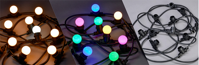 В ассортимент IEK Lighting входят также гирлянды с лампами в комплекте (10 LED-ламп мощностью 1 Вт) разноцветного или теплого белого свечения. Легкие плафоны из ударопрочного пластика не разобьются при транспортировке, использовании и хранении.