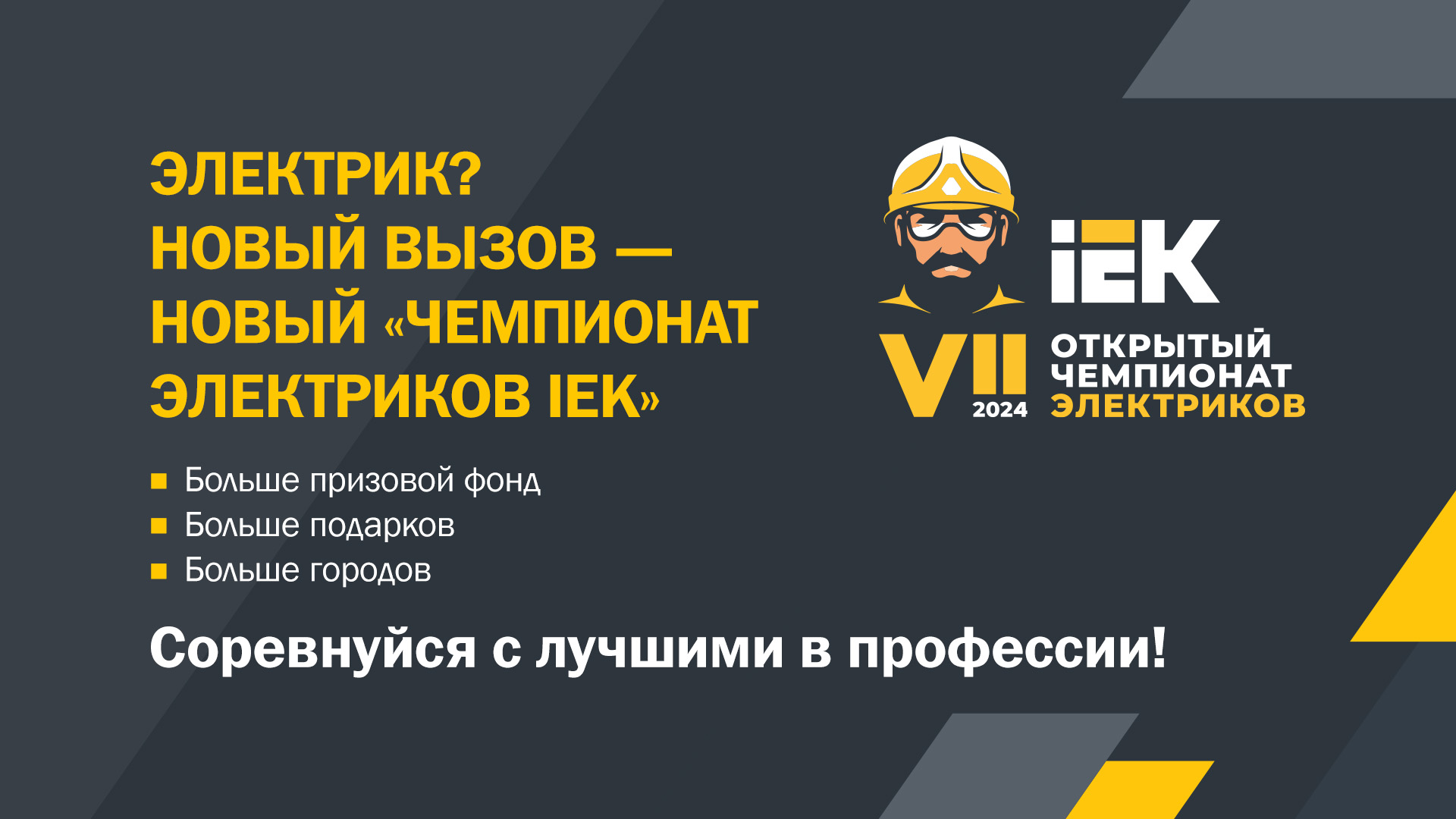 IEK GROUP объявляет начало Отборочного этапа на VII Открытый чемпионат электриков IEK! В этом году — ещё больше призовой фонд, больше городов присутствия, больше возможностей стать узнаваемым!
