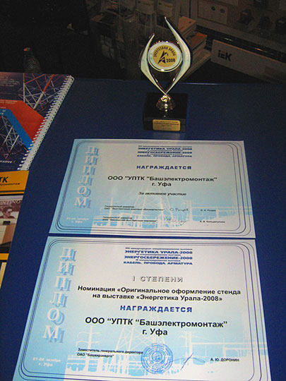 По итогам выставки УПТК «Башэлектромонтаж» получил диплом за «Оригинальное оформление стенда» и активное участие в ее работе. Цель участия «Башэлектромонтаж» — увеличение количества клиентов с Башкортостана и соседних регионов, была достигнута. Несомненно, Группа компаний IEK, принимая участие в дальнейших совместных проектах, будет способствовать новым победам своих партнеров и в дальнейшем.