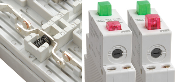 Совместимость размеров КМУ11 позволяет устанавливать ее в стандартный щиток с любыми аппаратами модульной серии.