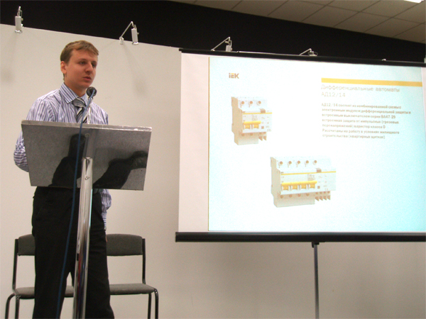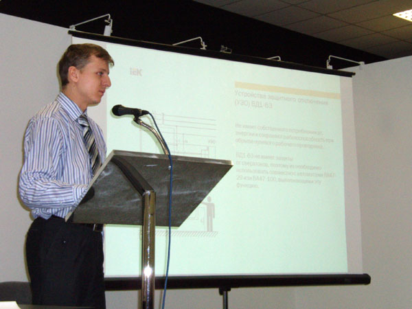 В рамках программы семинара Группа компаний IEK представила устройства защитного отключения ТМ IEK (УЗО), чтобы в полной мере проиллюстрировать оптимальный подход к вопросу обеспечения пожарной безопасности в строительстве, реконструкции и эксплуатации жилых, офисных и промышленных объектов. Основное внимание слушателей было обращено на то, что защиту от возгорания с помощью устройств защитного отключения целесообразно использовать повсеместно, так как применение УЗО поможет избежать многих неприятностей, либо значительно минимизировать их. Презентация данного устройства встретила множество откликов со стороны аудитории.