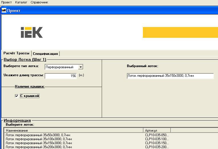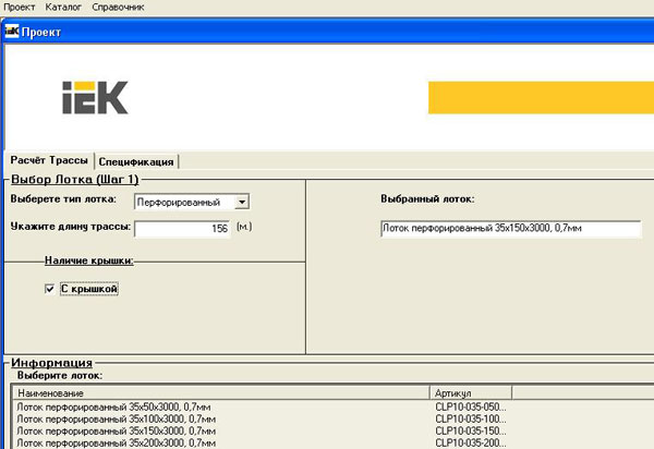 Программа имеет логически последовательный алгоритм подбора лотков и соединителей к ним, всех необходимых аксессуаров, подвесов и крепежа, без которого невозможно построить кабельную трассу с использованием металлических прокатных и проволочных лотков.