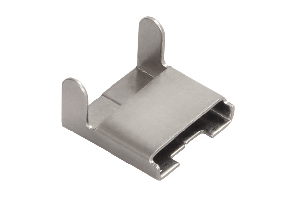 Скрепа СУ-20 выполнена их монолитной пластины, благодаря чему обладает большей прочностью по сравнению со скрепой СГ-20. Изделие снабжено заостренными зубцами, направленными вдоль и поперек бандажной ленты. Подобная конструкция скрепы позволяет прочно фиксировать бандажную ленту.