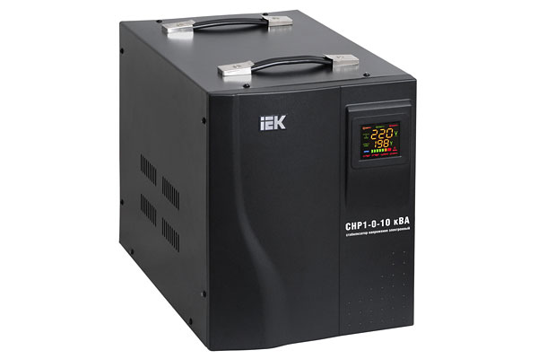 Стабилизаторы напряжения однофазные электронные СНР1 торговой марки IEK® относятся к типу автотрансформаторных стабилизаторов с электронным управлением, обеспечивающих регулирование выходного напряжения с высокой точностью его поддержания. Регулирование обеспечивается переключением отводов обмотки линейного автотрансформатора электромагнитными силовыми реле, управление которыми производит электронный модуль управления (далее — ЭМУ) стабилизатора.