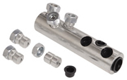 Вторая группа новинок ГК IEK — это механические наконечники и гильзы. Механические наконечники АМН (алюминиевые), АММН (медно-алюминиевые) и гильзы АМГ (алюминиевые) позволяют осуществлять соединения проводников между собой с помощью гаечных ключей, не используя инструмент для опрессовки. Корпуса изделий изготовлены из алюминиевых сплавов повышенной прочности. Внутренняя поверхность наконечников и гильз покрыта специальной пастой, увеличивающей проводимость контактного соединения, а также предохраняющей внутреннюю поверхность изделия от образования на ней тонкой оксидной пленки. Поперечная насечка на внутренней поверхности в комбинации со срывными болтами улучшает механические и электрические свойства соединения. Изделия могут применяться как для однопроволочных, так и многопроволочных, круглых и секторных жил. Хвостовик наконечника АММН изготовлен из электротехнической меди. Каждое изделие снабжено защитными колпачками, дополнительно предохраняющими внутреннюю поверхность от окисления, а также препятствующими вытеканию смазки.