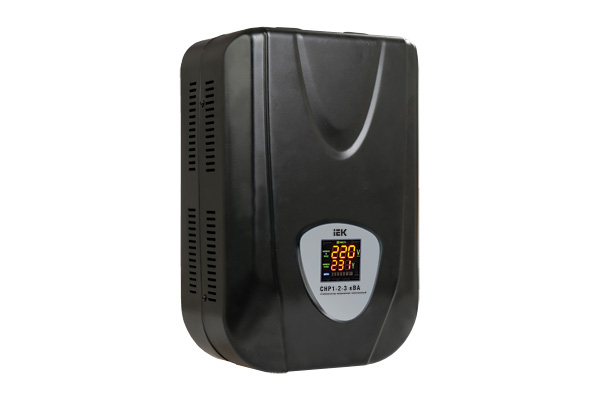 Стабилизаторы напряжения однофазные электронные СНР1 торговой марки IEK® относятся к типу автотрансформаторных стабилизаторов с электронным управлением, обеспечивающих регулирование выходного напряжения с высокой точностью его поддержания. Регулирование обеспечивается переключением отводов обмотки линейного автотрансформатора электромагнитными силовыми реле, управление которыми производит электронный модуль управления стабилизатора.