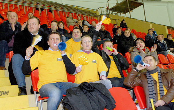 Играть на чужой площадке всегда тяжело, а играть с чемпионом — еще сложнее. Но в Москве иркутчане нашли активную поддержку в лице своих новых болельщиков — сотрудников ГК IEK! Два десятка болельщиков, одетых в желтые фирменные майки IEK, прибыли на стадион «Динамо». С первых минут матча «желтые человечки», как из их назвал комментатор одного их спортивных каналов, попытались превратить московский стадион практически в родной для команды «Байкал Энергия».
